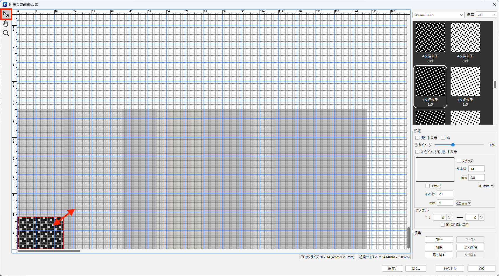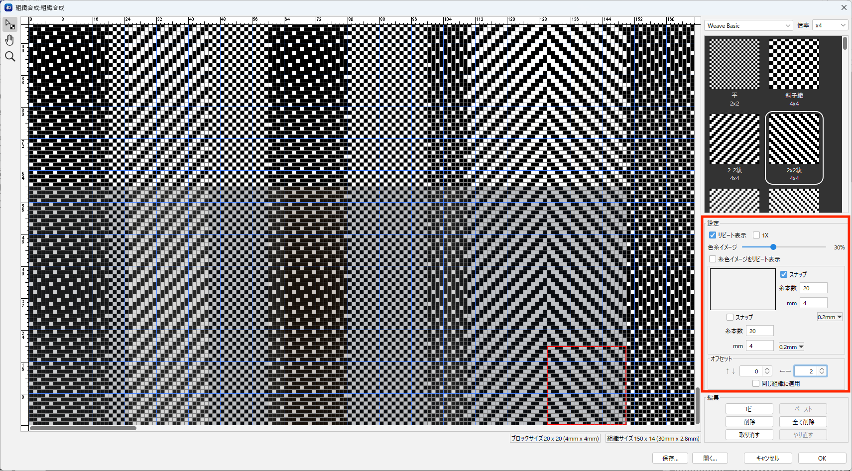 織物のデザインをしている際、「基本の組織をベースに、一部だけ別の組織を組み合わせたい」「複雑なチェック柄を表現したい」といった場面はありませんか?