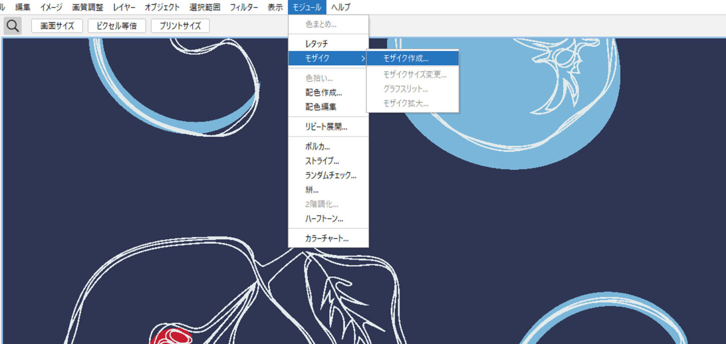 - モジュールメニュー>モザイク>モザイク作成 を選択します。