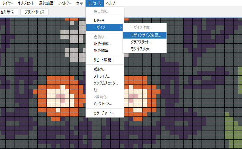 - モジュールメニュー>モザイク>モザイクサイズ変更 を選択します。