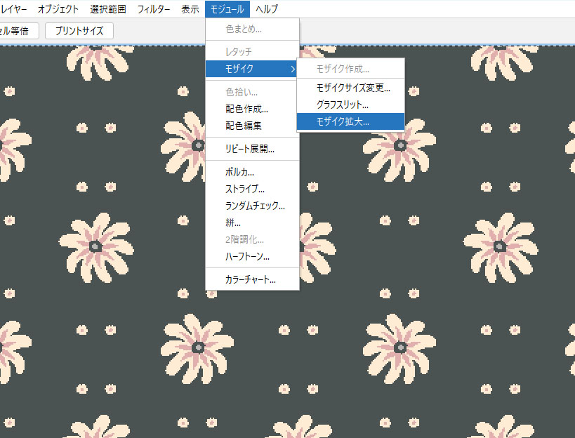 - モジュールメニュー>モザイク>モザイク拡大 を選択します。