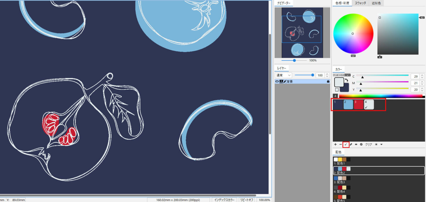 - モザイク時に優先的に残したい色をカラーテーブルから選択して「✓」ボタンをクリックします。