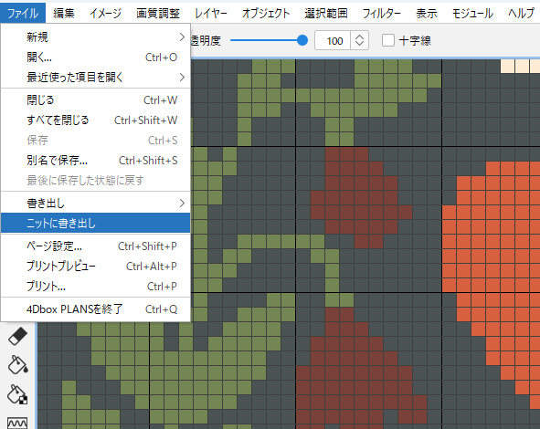 - ファイルメニュー>ニットに書き出し を選択します。