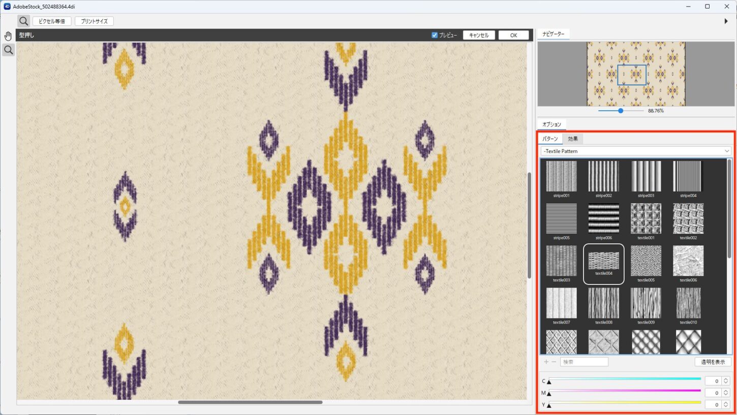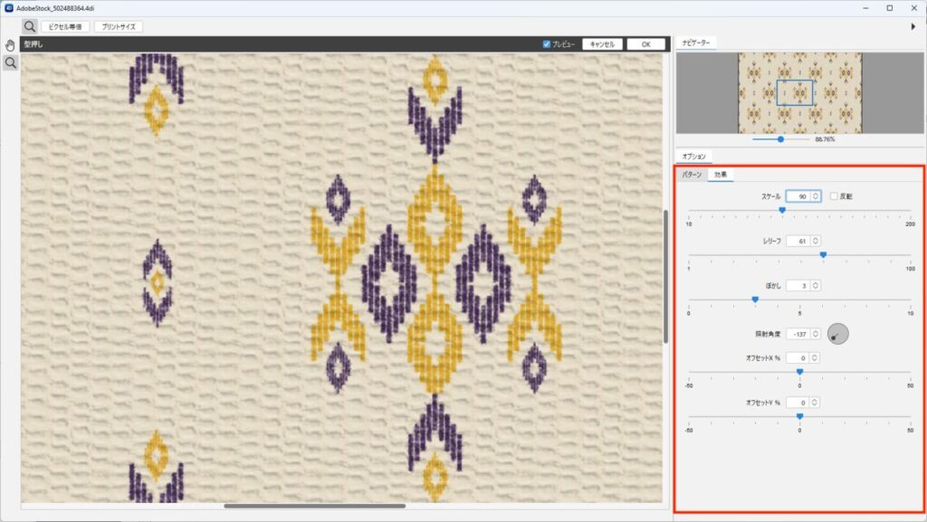 擬似的に生地のような素材感を型押しします。RGBカラーのみ対応しています。