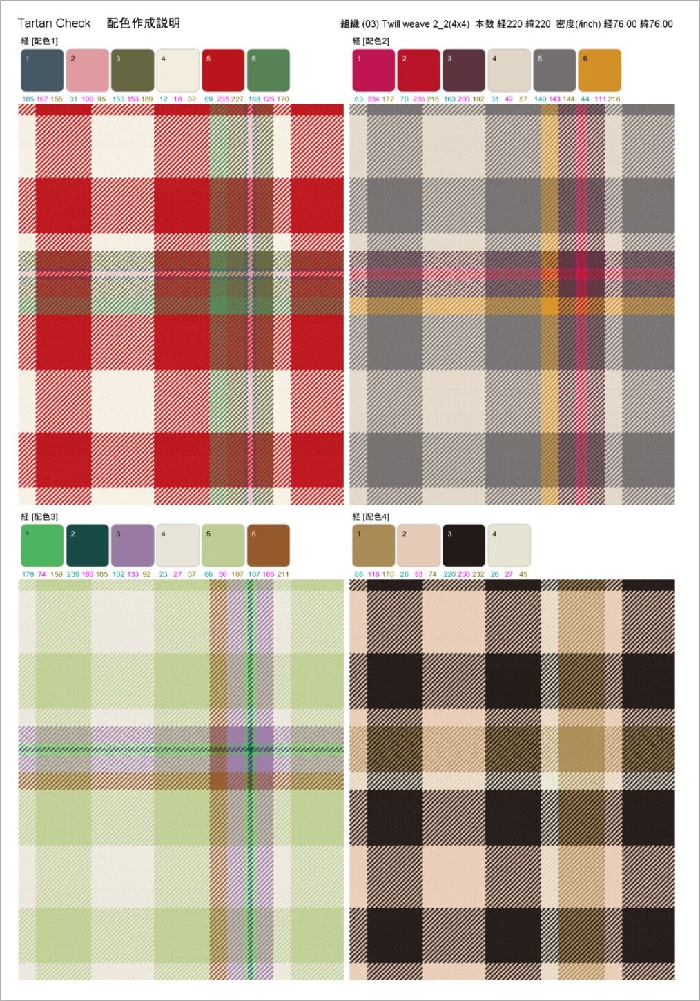 経/緯経緯糸の配色を表示しています。