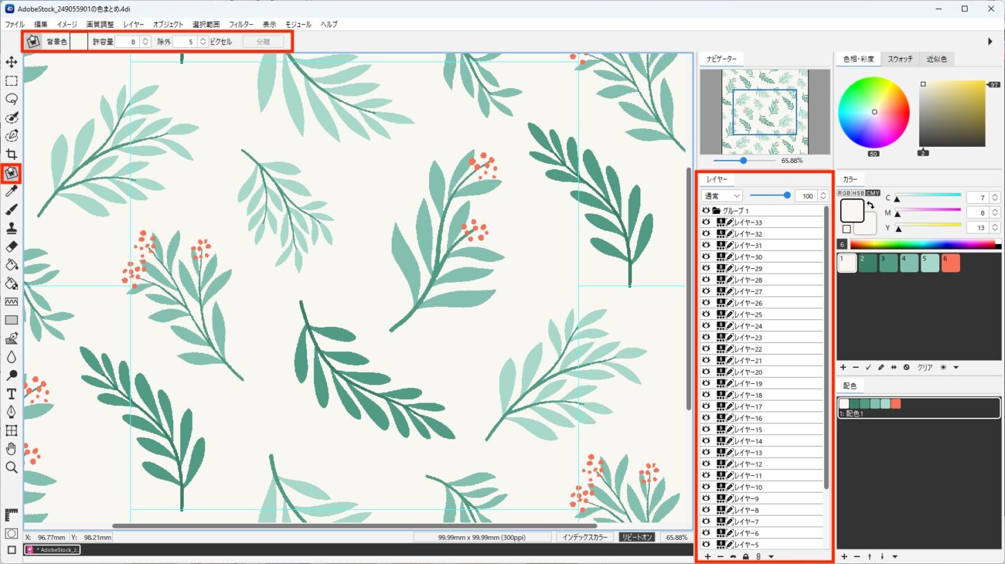 このツールを使えば、背景とモチーフを自動判別し、一瞬で複数のモチーフをレイヤーに分離することができます。