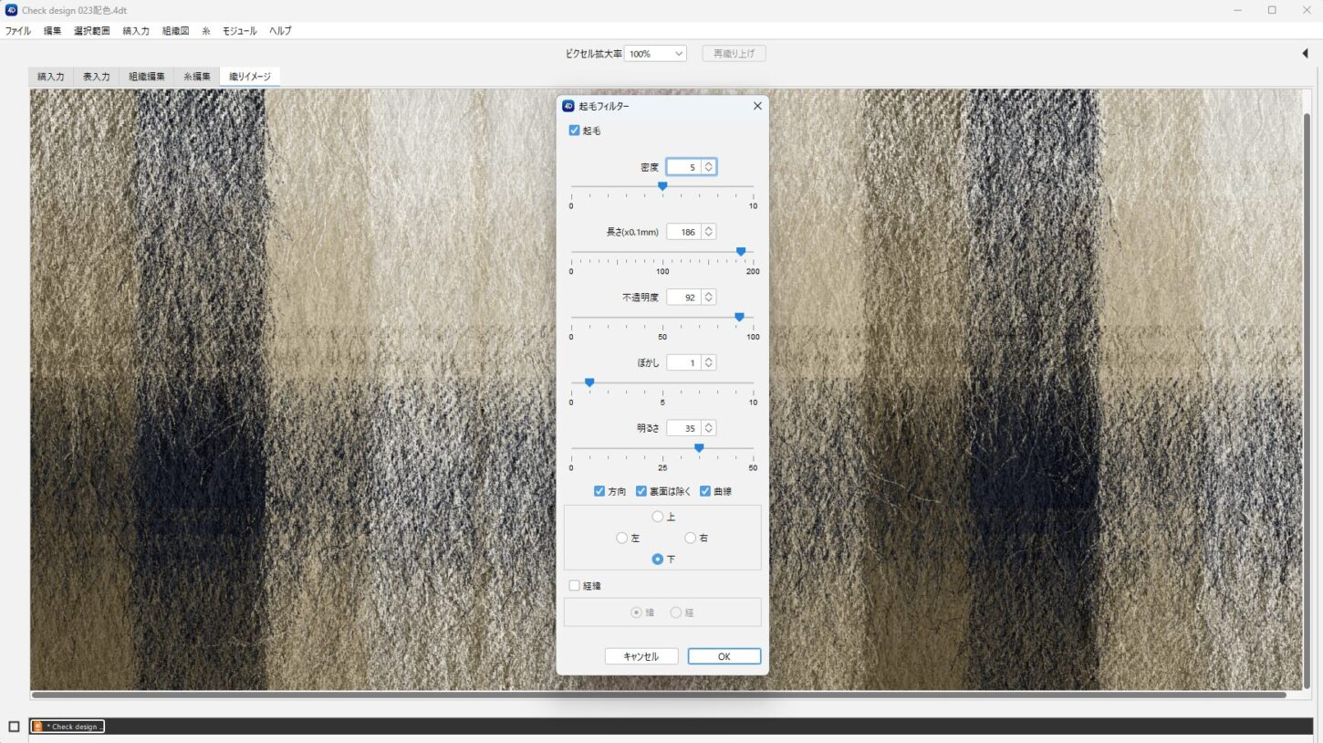 経糸または緯糸を指定して、個別に起毛効果を適用できるようになりました。