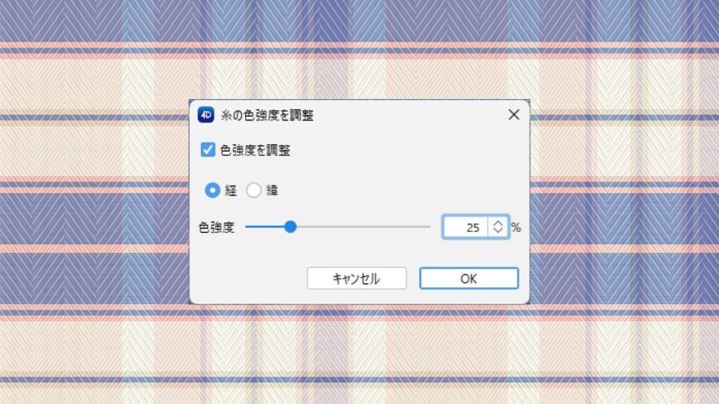 経糸の色強度が調整可能になりました。 これにより、経または緯のいずれかを選択し、色強度(1〜100%)を設定できます。