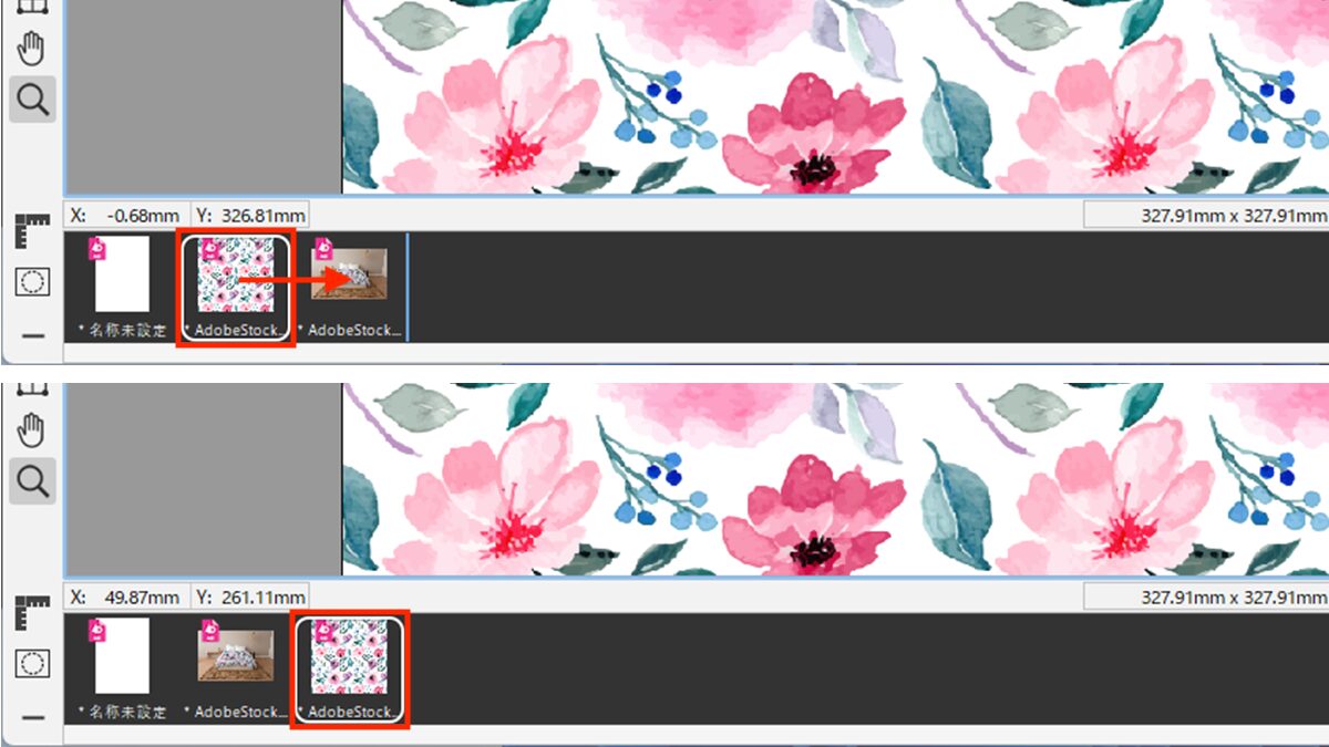 リピート表示中、「隣接」がオフの状態で、境界をまたぐモチーフも分割されず一括選択されるようになりました。 - レタッチの一括Undo