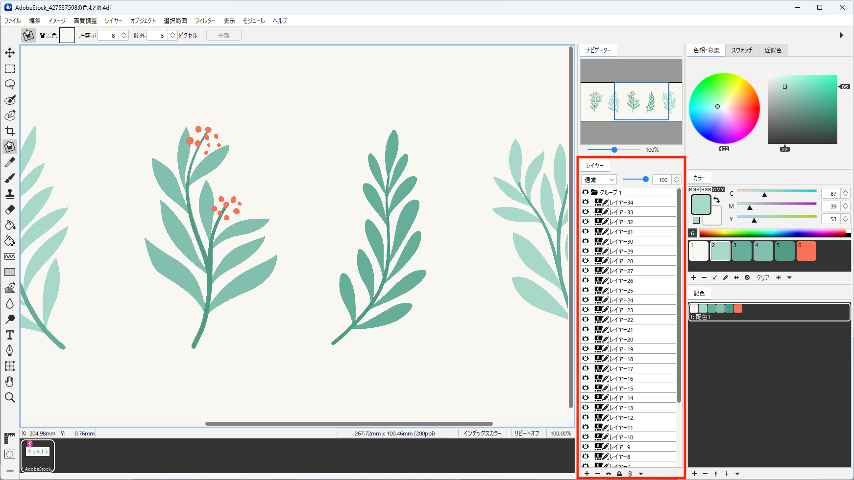 ※分離されたモチーフはグループフォルダ内のイメージレイヤーに、背景色は背景色レイヤーとして作成されます。